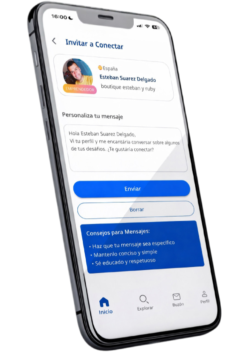 Con base en tu diagnóstico, te compartiremos perfiles de mentores con experiencia relevante para tu negocio. Tú darás el primer paso enviando un mensaje a través de la plataforma para iniciar la conversación y definir cómo trabajarán juntas/os.
